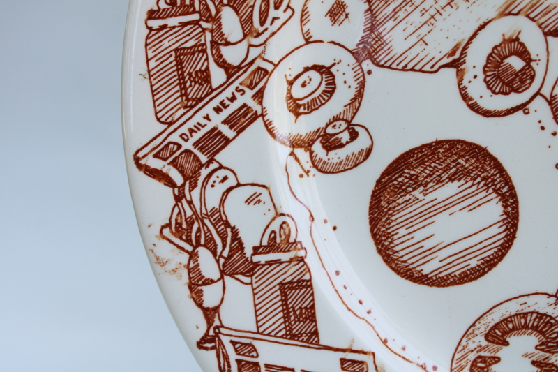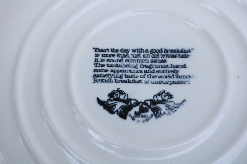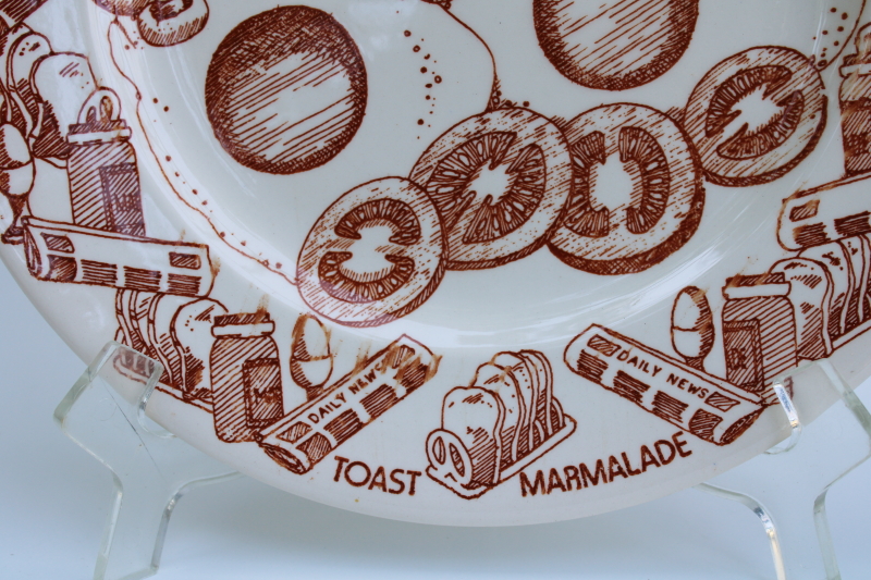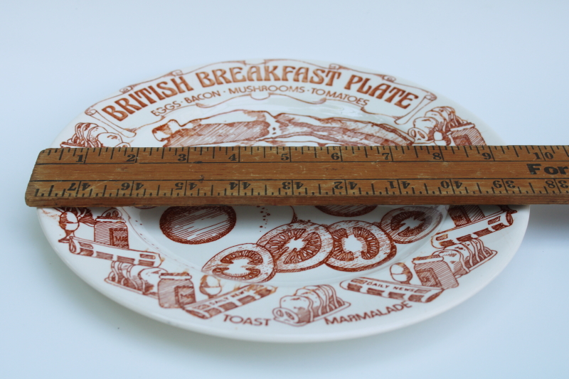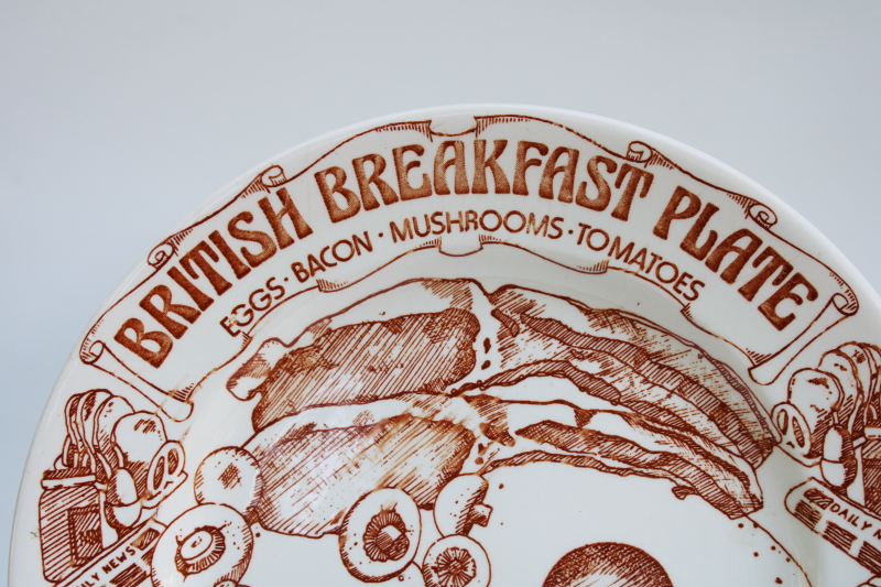 Unusual vintage ceramic plate for a classic British Breakfast with illustrations of the most important elements (besides Tea, of course!). Plate measures about 9 3/4" in diameter.